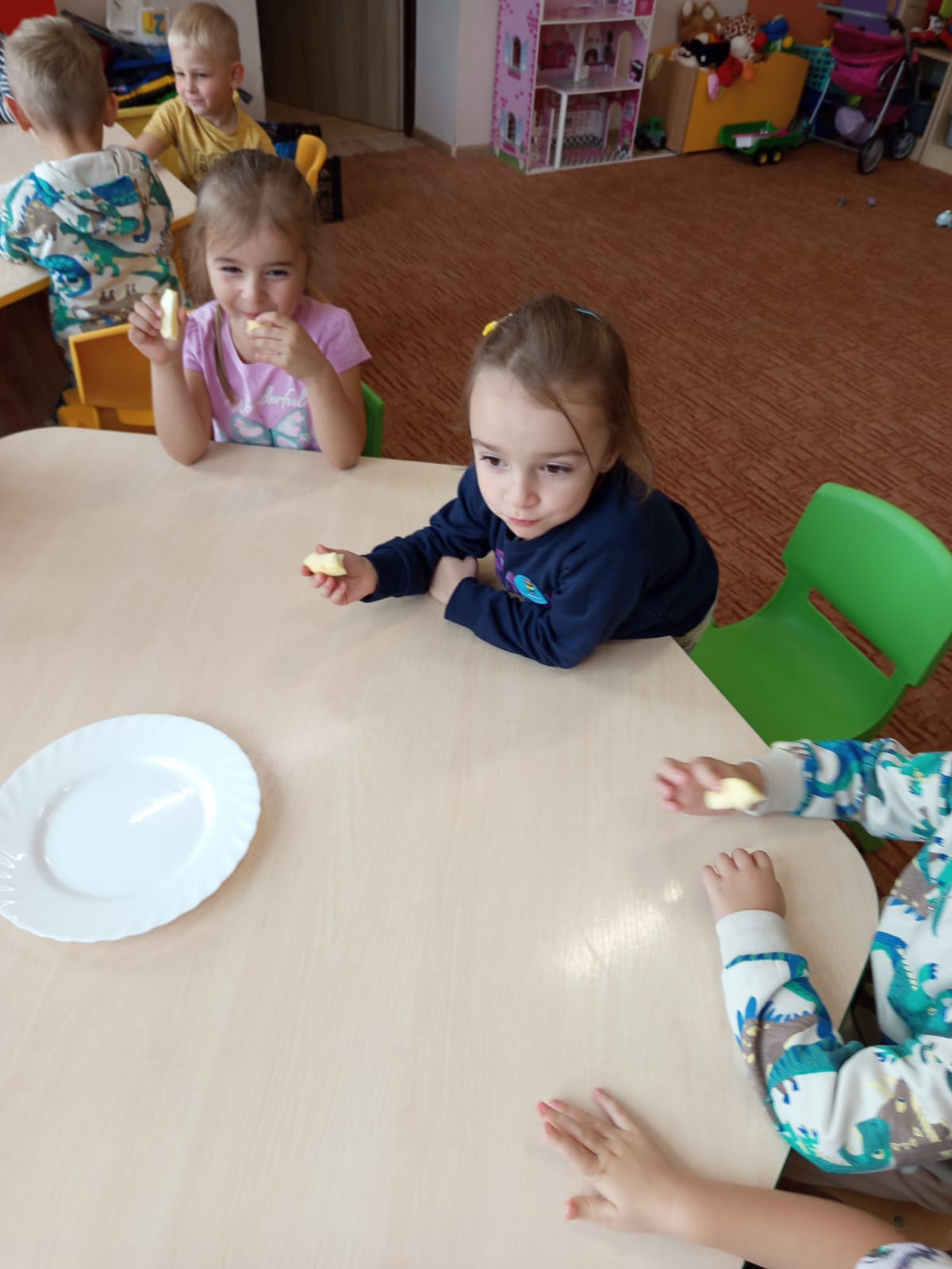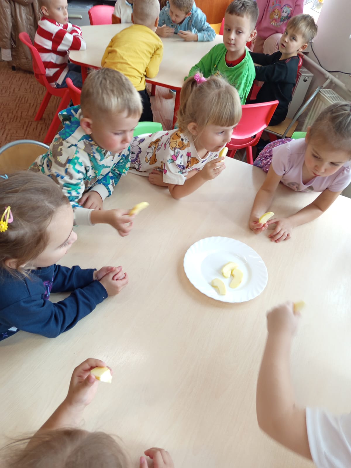 29 października w przedszkolu obchodziliśmy Dzień Jabłka – było zdrowo i bardzo smacznie. Dzieci uczestniczyły w zajęciach plastycznych, podczas których powstały piękne prace, rozwijając przy tym wyobraźnię oraz zdolności manualne. Nie zabrakło też pysznego poczęstunku – dzieci miały okazję spróbować różnych odmian jabłek. Był to dzień pełen radości, zabawy i zdrowych przekąsek.