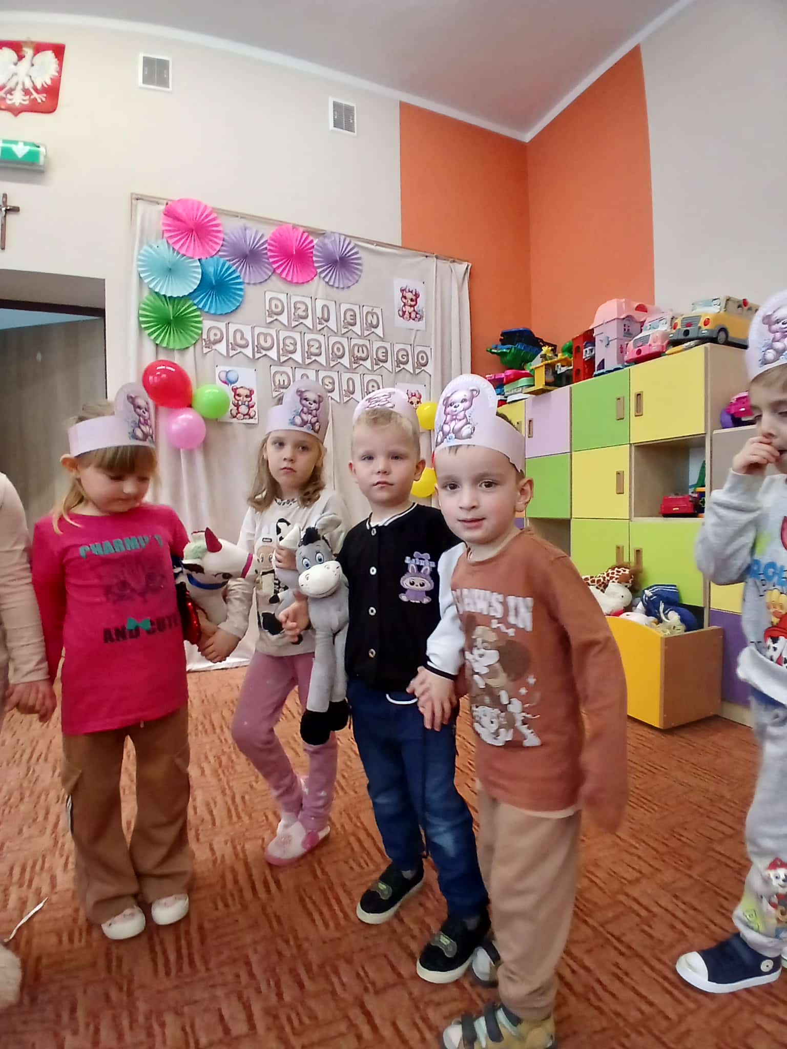 25 listopada 2025 r. dzieci z naszego przedszkola świętowały Dzień Pluszowego Misia. Był to dzień pełen radości, zabawy i kreatywności! Wspólnie bawiliśmy się w zabawę ruchową „Stary niedźwiedź mocno śpi”. Oglądaliśmy film edukacyjny o misiach, poznając ciekawostki o tych niezwykłych zwierzętach, poznaliśmy również historię pluszowego misia. Wykonaliśmy prace plastyczne w kształcie misia. Na koniec spróbowaliśmy przysmaku naszego bohatera – pysznego miodu. Na zakończenie każde dziecko otrzymało dyplom przyjaciela pluszowego misia oraz specjalną opaskę, a całość uświetniły brązowe stroje, w których dzieci wyglądały jak prawdziwe małe misie.