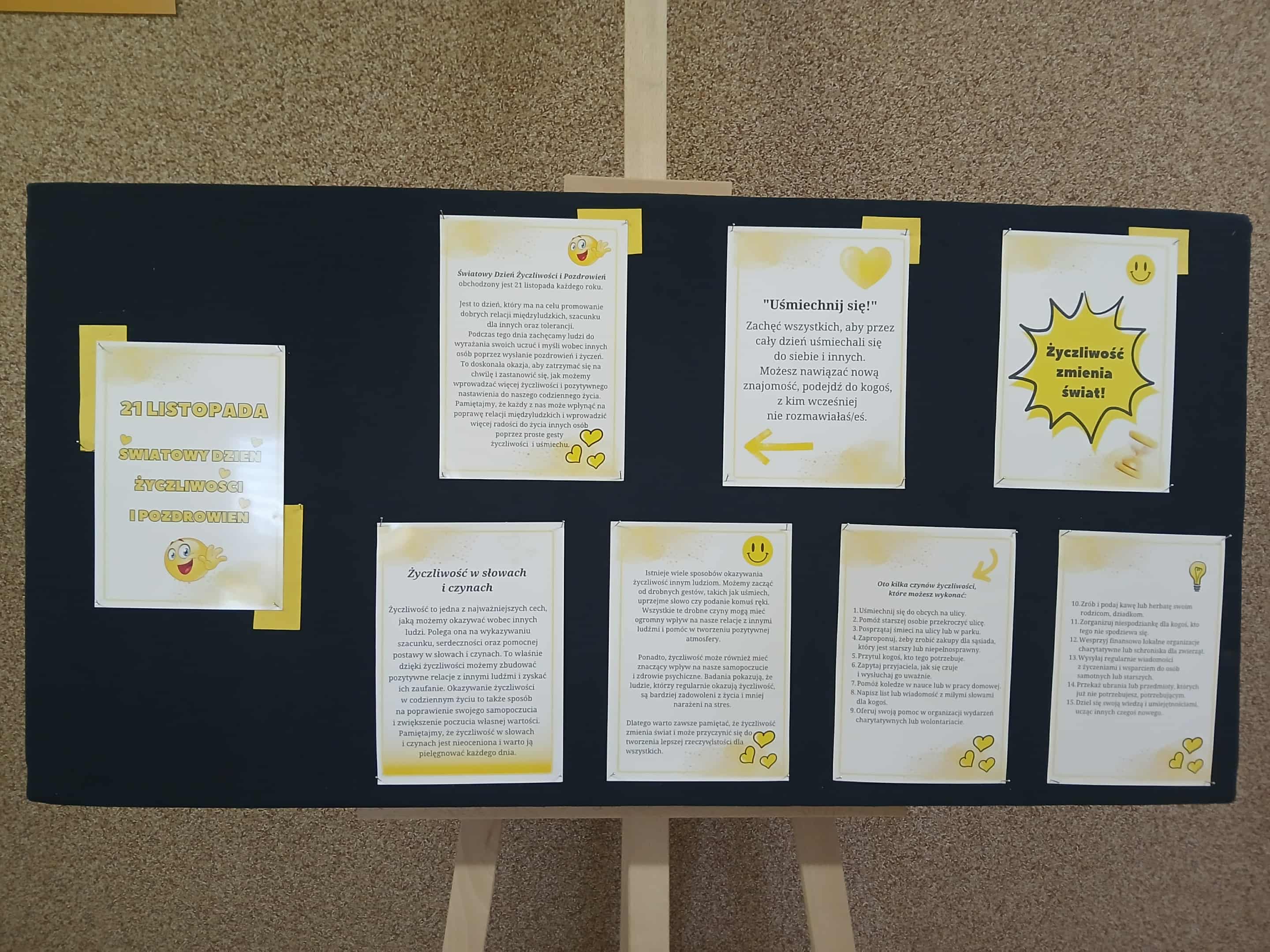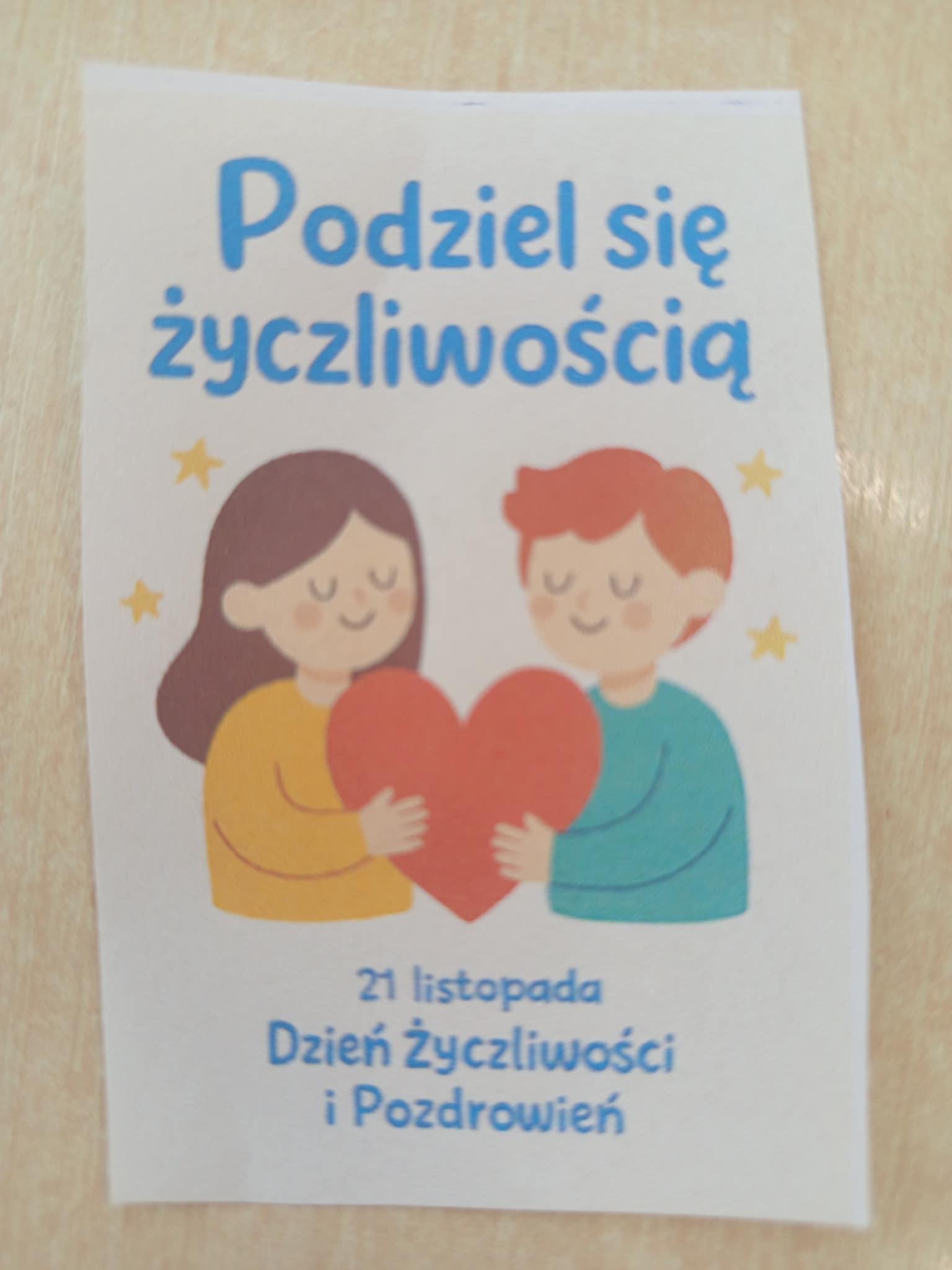Dzień Życzliwości to wyjątkowa okazja, by przypomnieć, jak ważne są dobre słowa, gesty i uśmiech. W naszym przedszkolu najmłodsze dzieci przygotowały kartki z życzeniami w ramach współpracy międzyszkolnej dla zaprzyjaźnionych szkół. Pomalowały również pięknie serca, które wręczyły swoim rodzicom. Na korytarzach pojawiły się materiały edukacyjne, które zachęcały do bycia uprzejmym i otwartym wobec innych.