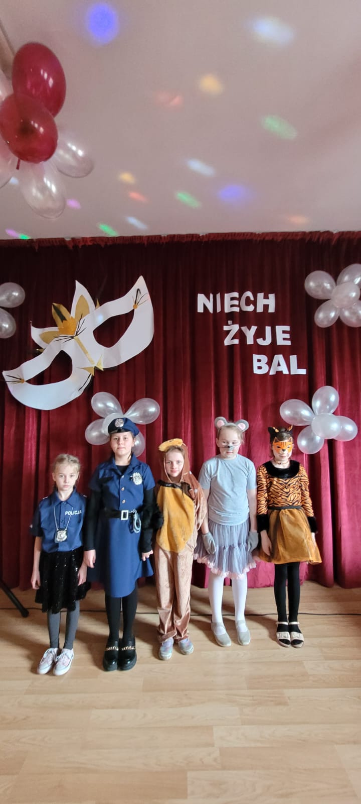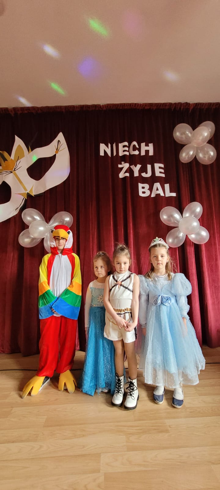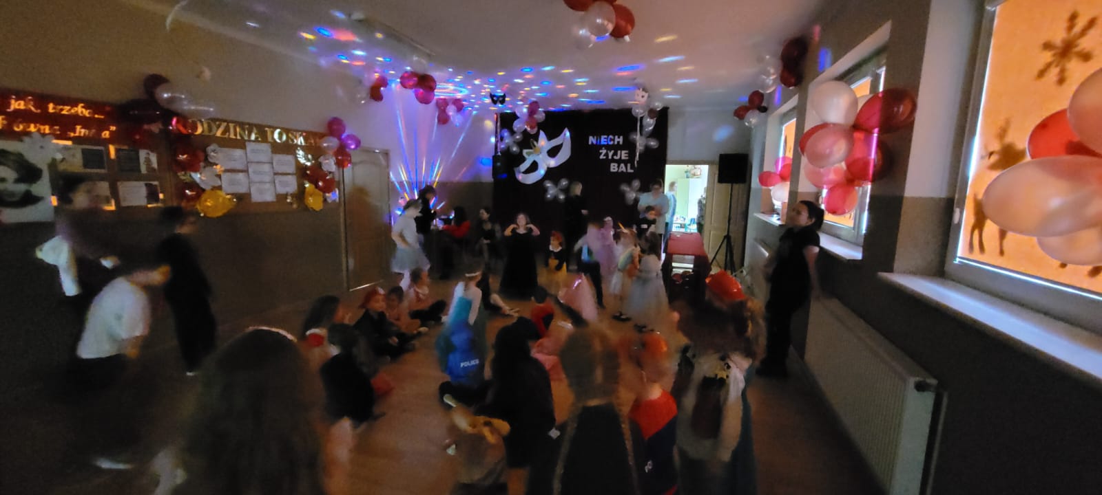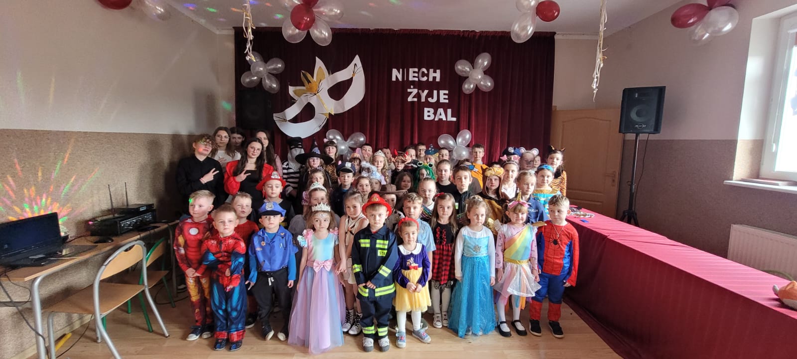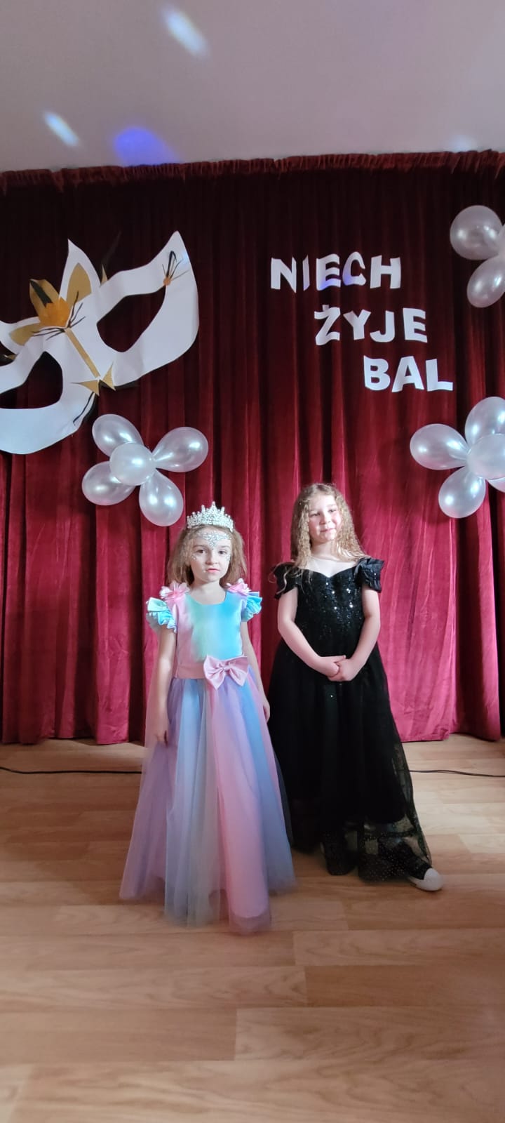 Bal noworoczny w Szkole Podstawowej w Grudnej Górnej odbył się w radosnej, świątecznej atmosferze, która od pierwszych chwil udzielała się wszystkim uczestnikom. Sala została udekorowana błyszczącymi girlandami, lampkami i kolorowymi balonami, tworząc ciepły, elegancki nastrój. W tle grała muzyka, która łączyła współczesne hity z klasycznymi utworami tanecznymi, zachęcając do wspólnej zabawy. Uczniowie, zwłaszcza ci najmłodsi, wcielili się w rolę bohaterów bajek, legend, czy filmów, zakładając piękne kostiumy.