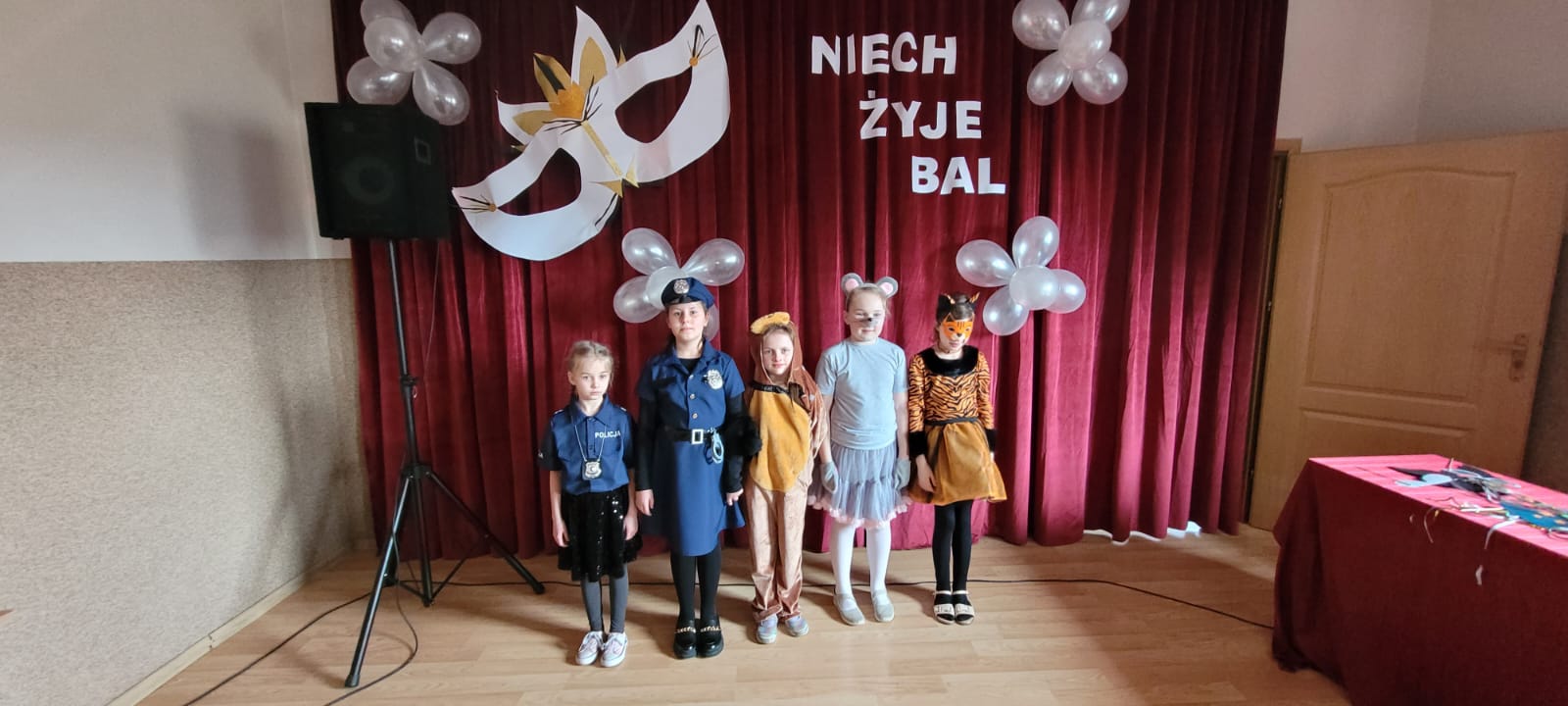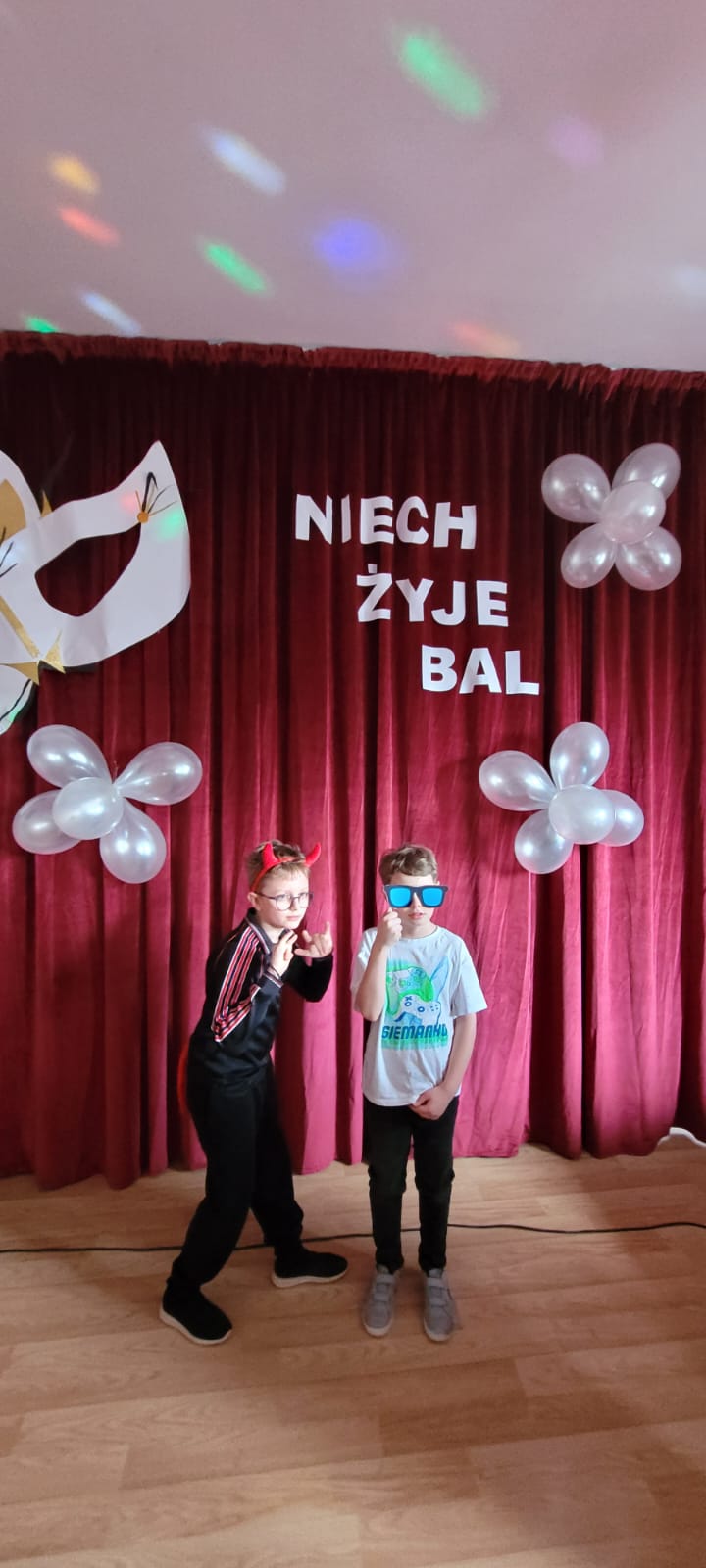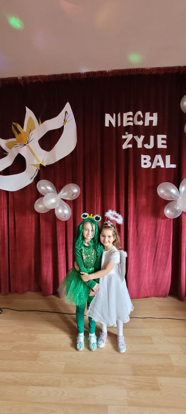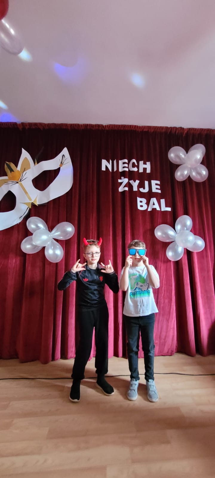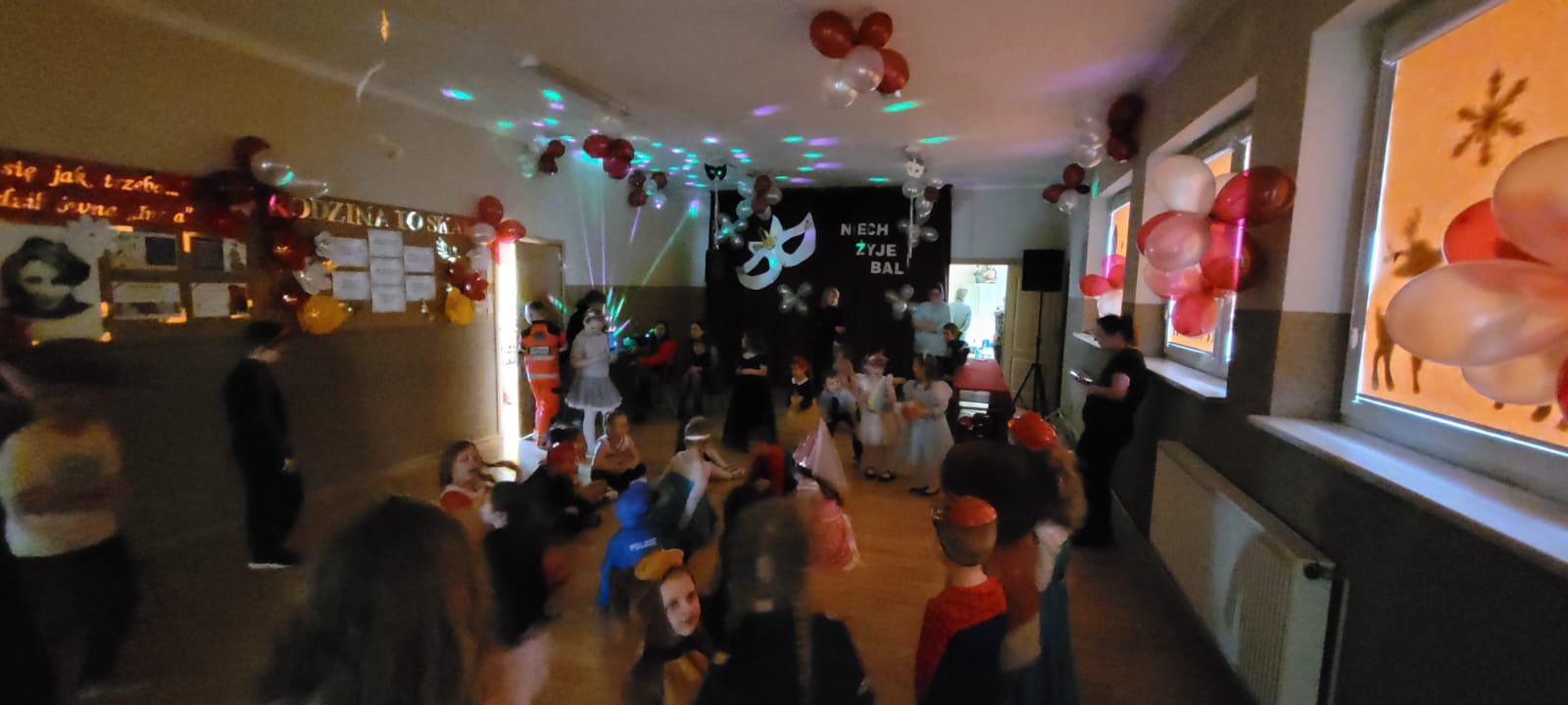 Bal noworoczny w Szkole Podstawowej w Grudnej Górnej odbył się w radosnej, świątecznej atmosferze, która od pierwszych chwil udzielała się wszystkim uczestnikom. Sala została udekorowana błyszczącymi girlandami, lampkami i kolorowymi balonami, tworząc ciepły, elegancki nastrój. W tle grała muzyka, która łączyła współczesne hity z klasycznymi utworami tanecznymi, zachęcając do wspólnej zabawy. Uczniowie, zwłaszcza ci najmłodsi, wcielili się w rolę bohaterów bajek, legend, czy filmów, zakładając piękne kostiumy.