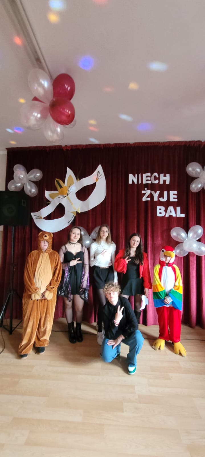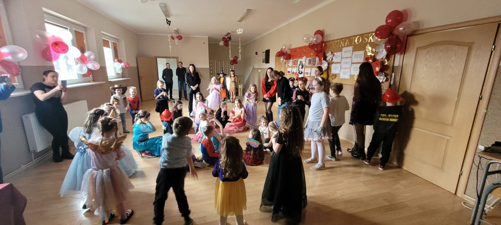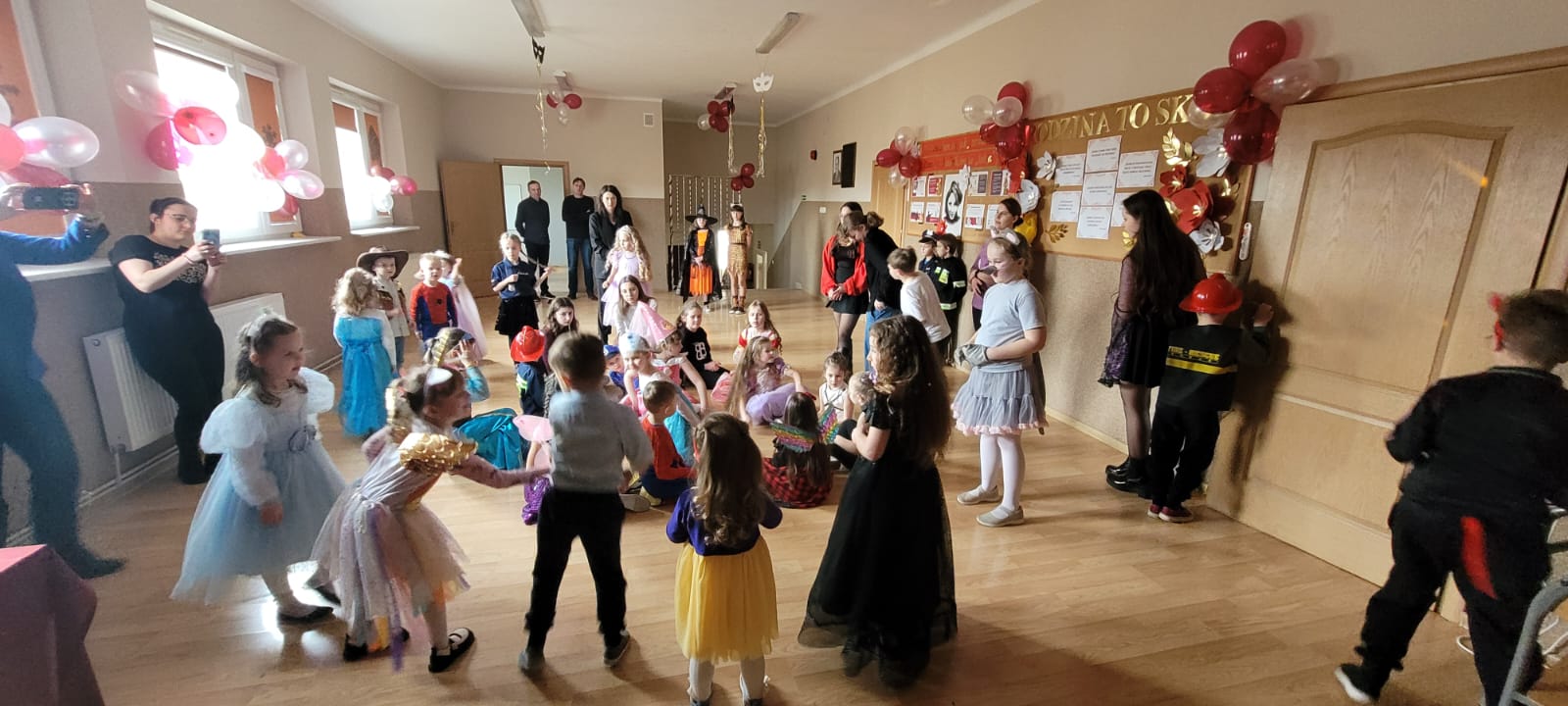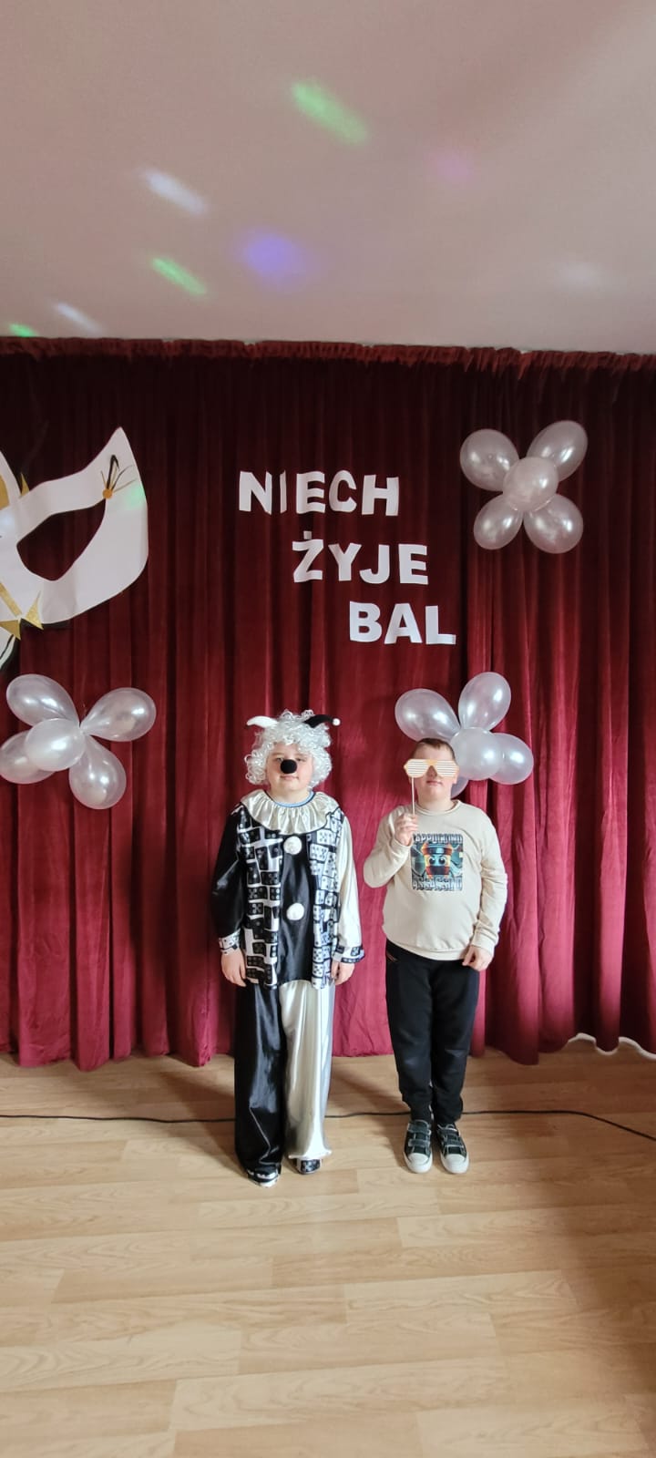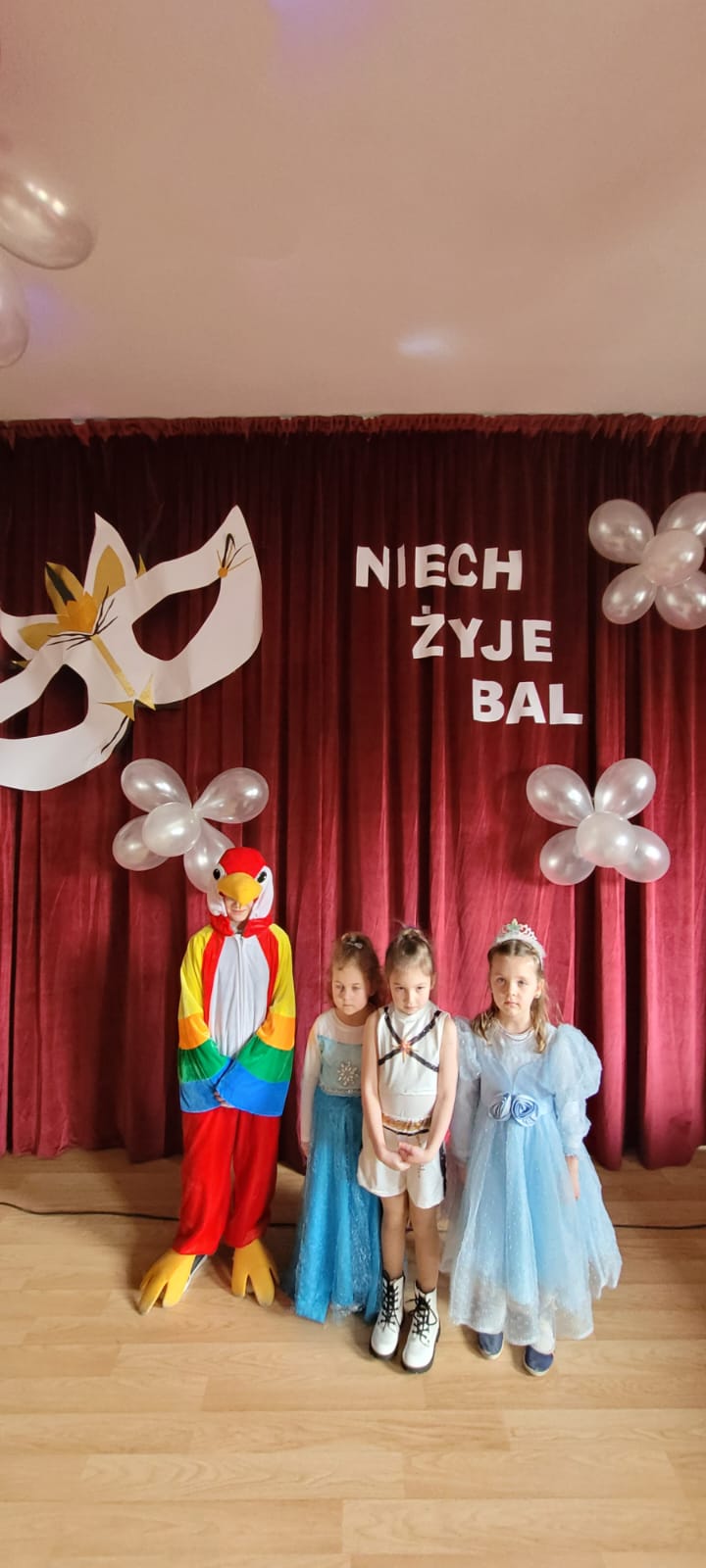 Bal noworoczny w Szkole Podstawowej w Grudnej Górnej odbył się w radosnej, świątecznej atmosferze, która od pierwszych chwil udzielała się wszystkim uczestnikom. Sala została udekorowana błyszczącymi girlandami, lampkami i kolorowymi balonami, tworząc ciepły, elegancki nastrój. W tle grała muzyka, która łączyła współczesne hity z klasycznymi utworami tanecznymi, zachęcając do wspólnej zabawy. Uczniowie, zwłaszcza ci najmłodsi, wcielili się w rolę bohaterów bajek, legend, czy filmów, zakładając piękne kostiumy.