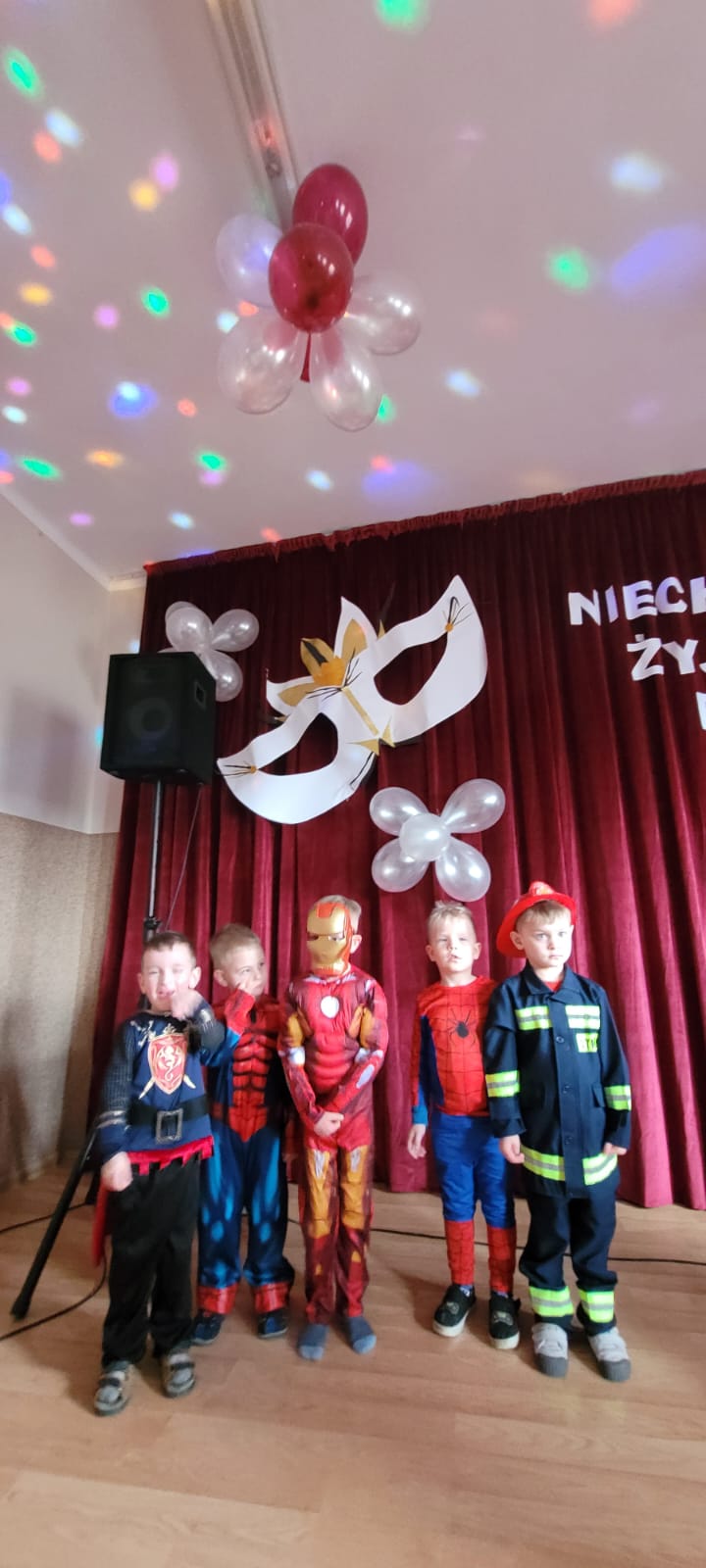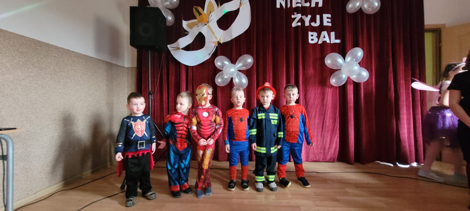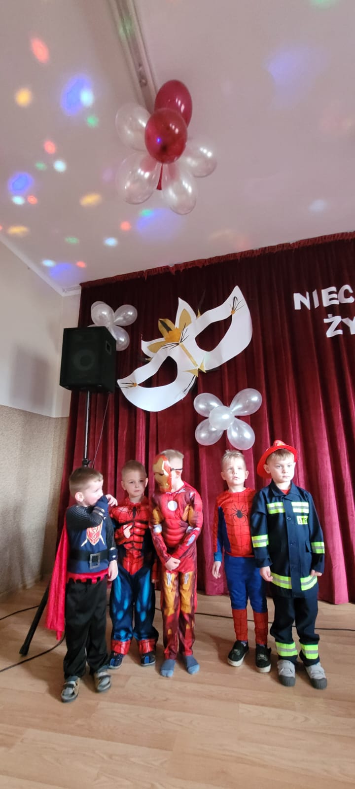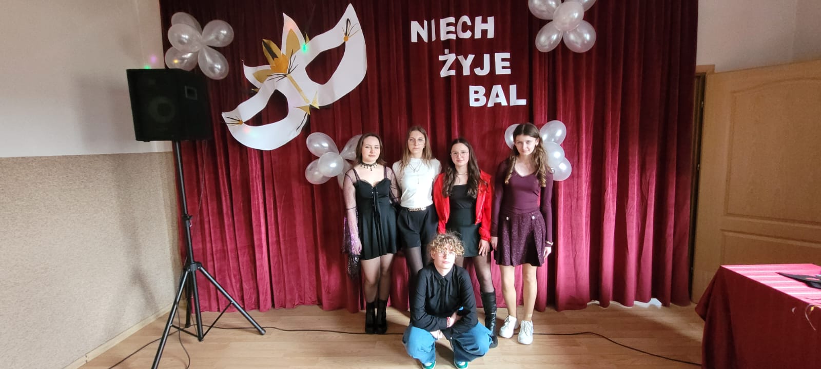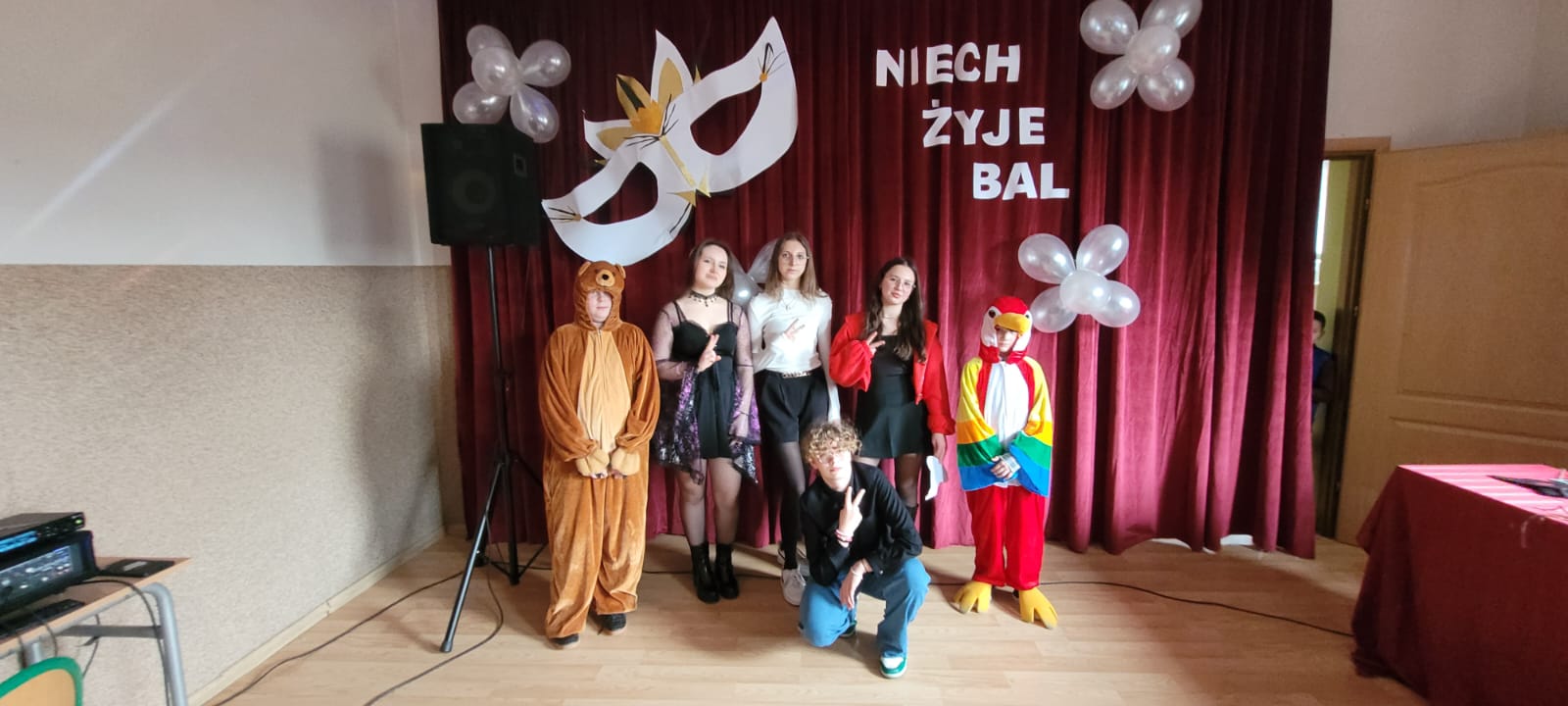 Bal noworoczny w Szkole Podstawowej w Grudnej Górnej odbył się w radosnej, świątecznej atmosferze, która od pierwszych chwil udzielała się wszystkim uczestnikom. Sala została udekorowana błyszczącymi girlandami, lampkami i kolorowymi balonami, tworząc ciepły, elegancki nastrój. W tle grała muzyka, która łączyła współczesne hity z klasycznymi utworami tanecznymi, zachęcając do wspólnej zabawy. Uczniowie, zwłaszcza ci najmłodsi, wcielili się w rolę bohaterów bajek, legend, czy filmów, zakładając piękne kostiumy.