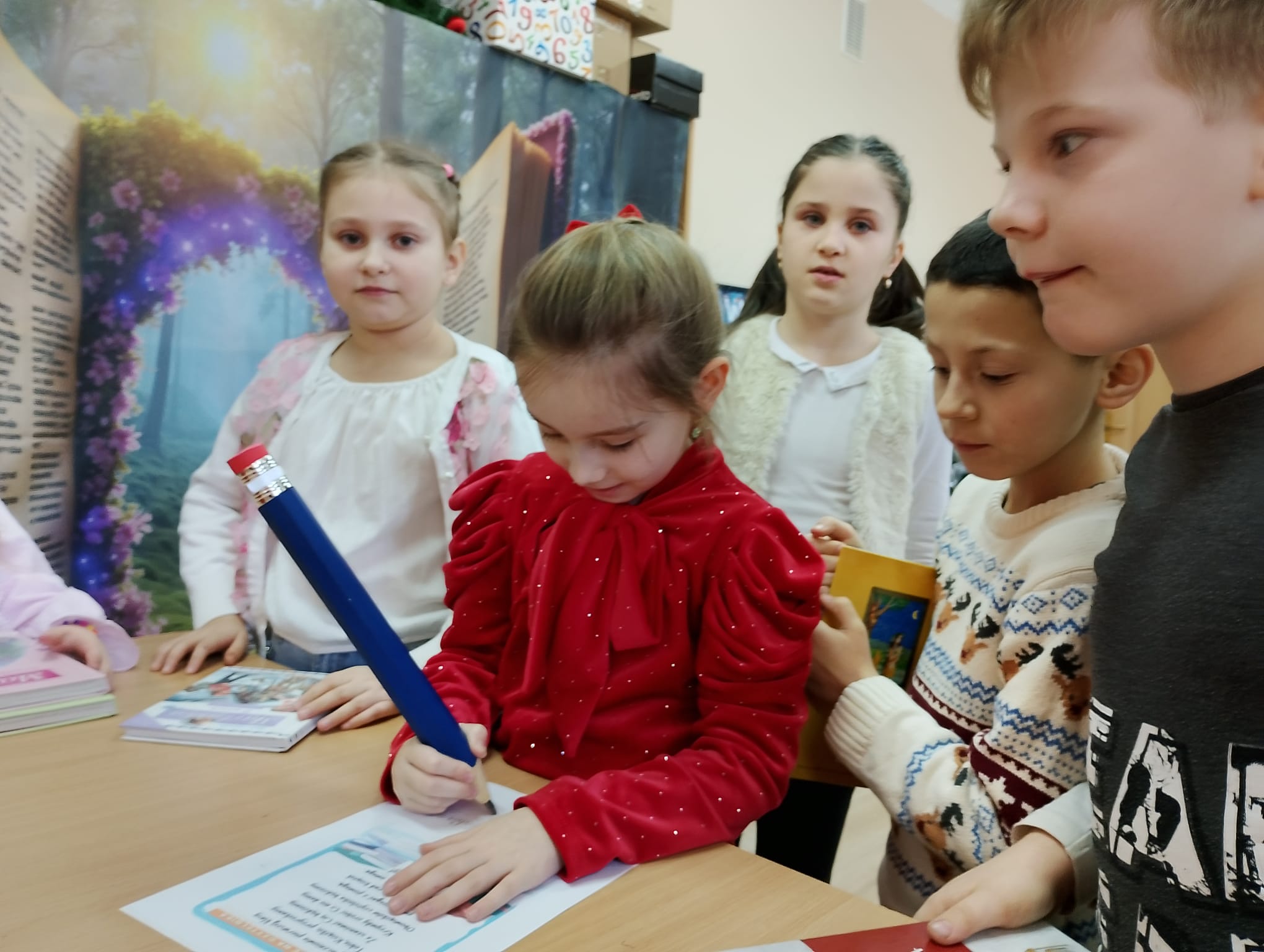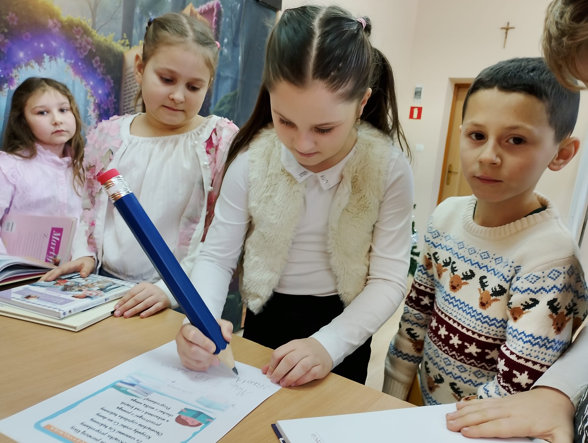 Po części zadaniowej uczniowie złożyli uroczystą przysięgę czytelnika i potwierdzili ją własnoręcznym podpisem wykonanym specjalnym ołówkiem. Na zakończenie każdy nowy czytelnik otrzymał pamiątkowy dyplom oraz drobny upominek przygotowany przez bibliotekę. Mamy nadzieję, że spotkanie zachęci uczniów do częstych wizyt w bibliotece i odkrywania radości płynącej z czytania.