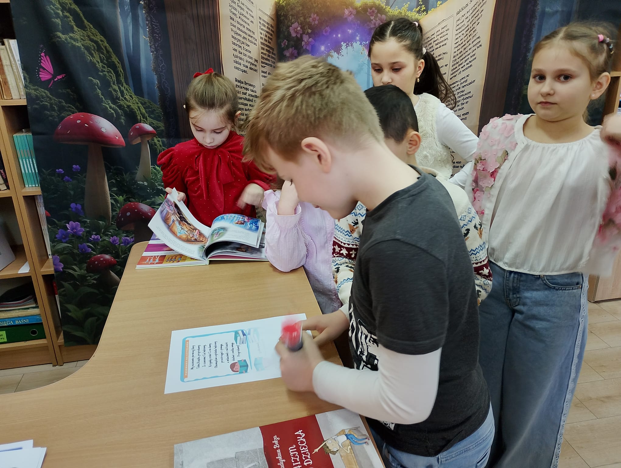 Spotkanie rozpoczęło się od wysłuchania listu od książek, w którym przypomniały one dzieciom, jak należy o nie dbać. Następnie uczniowie zapoznali się z księgozbiorem biblioteki, kartami czytelników oraz podstawowymi zasadami wypożyczania książek. Kolejnym etapem były dwa zadania czytelnicze, z którymi wszyscy uczestnicy poradzili sobie doskonale.