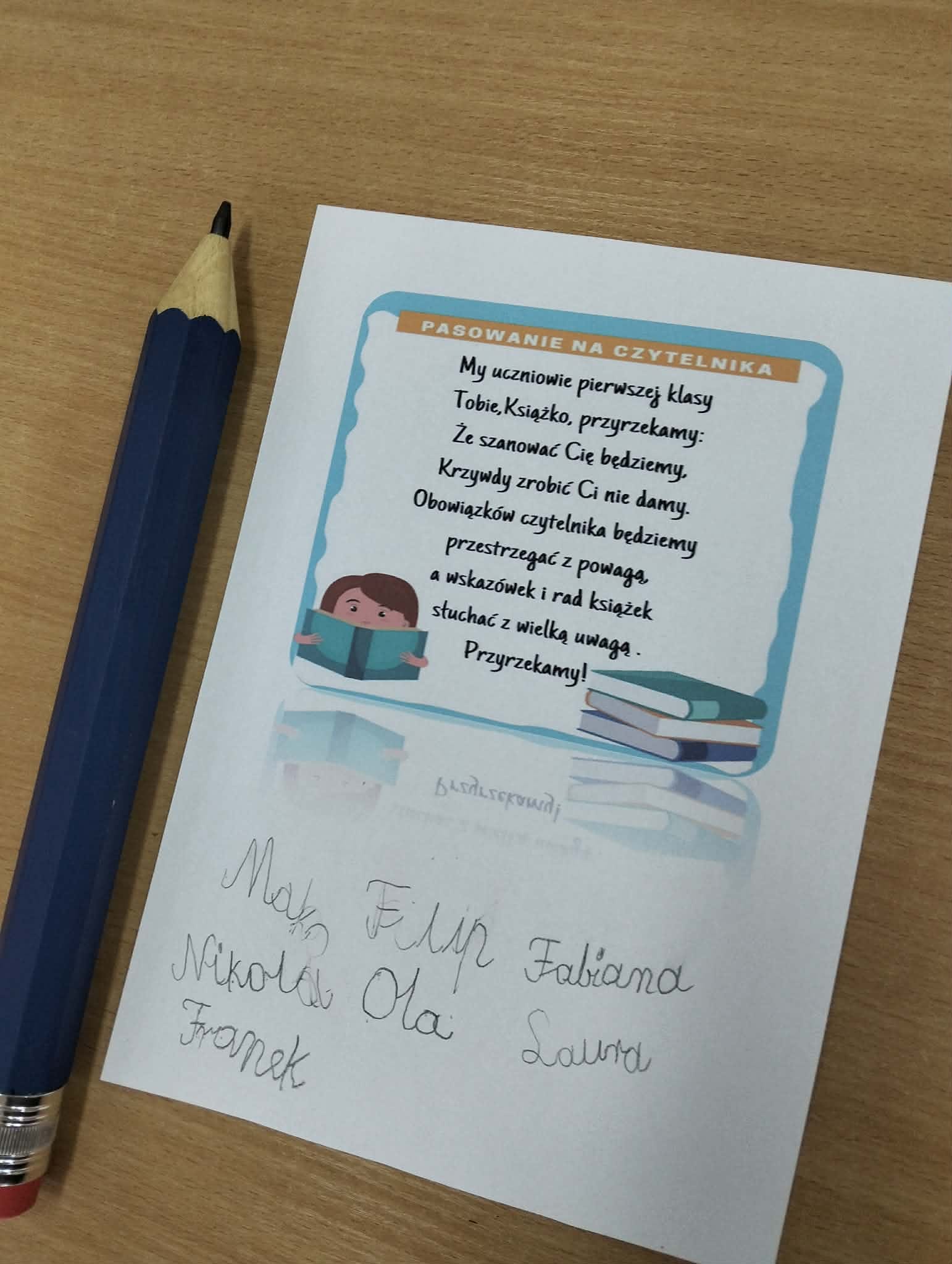 W bibliotece szkolnej odbyło się uroczyste pasowanie na czytelnika. W wydarzeniu wzięli udział uczniowie klasy 1, którzy tego dnia oficjalnie dołączyli do grona czytelników.