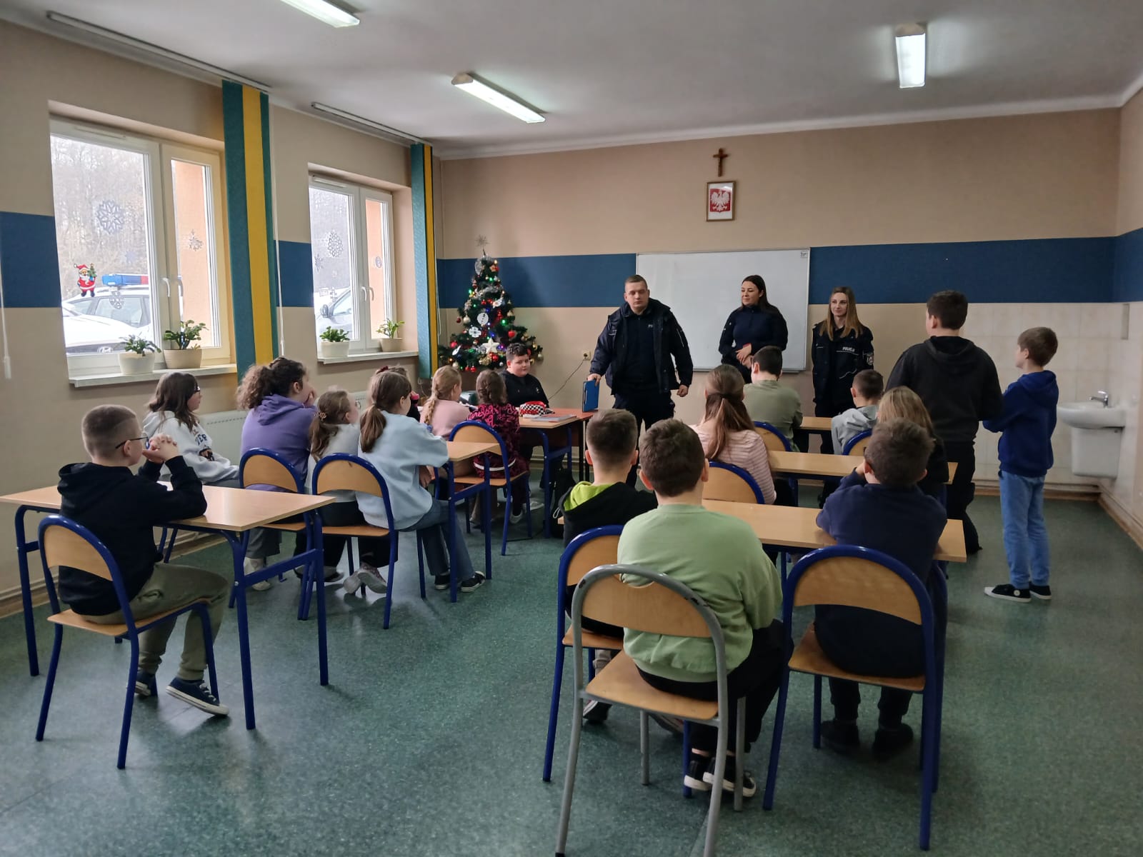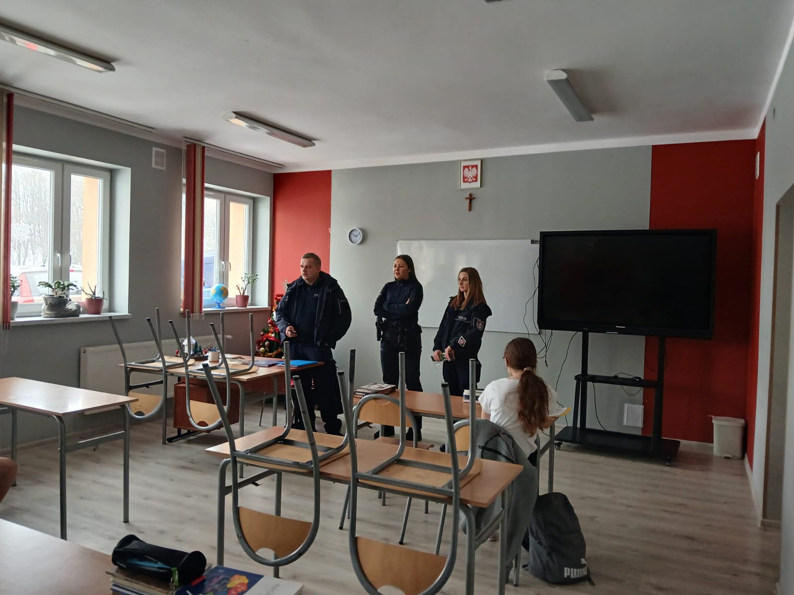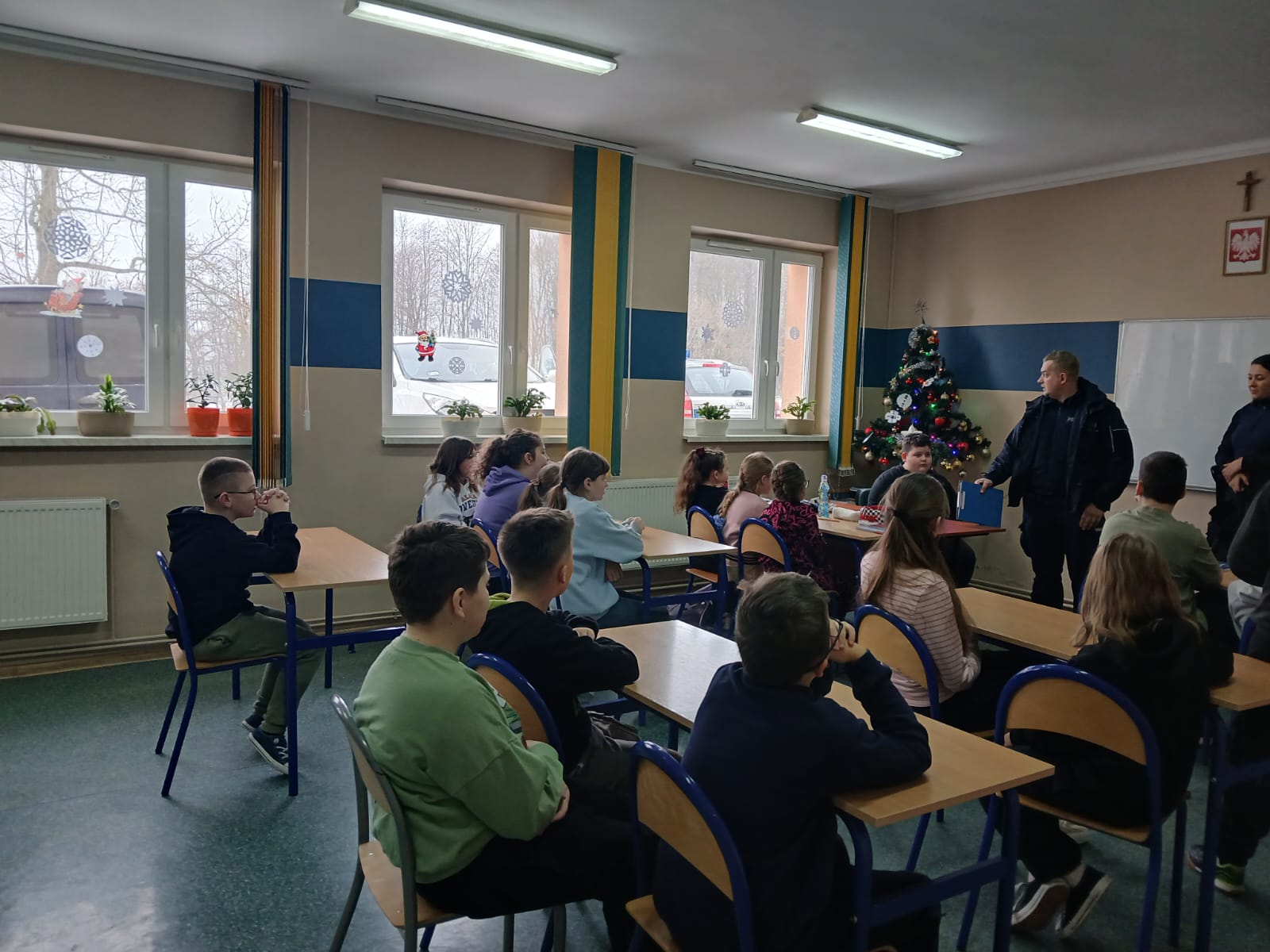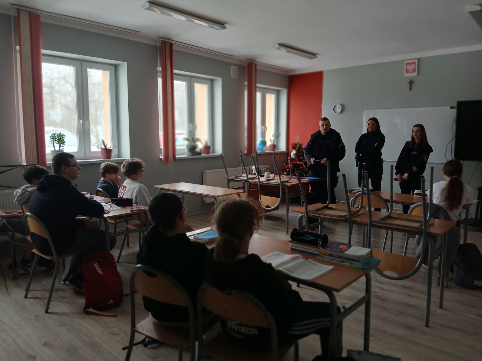 W piątek, 23 stycznia 2026 r., naszą szkołę odwiedzili przedstawiciele Komisariatu Policji w Brzostku. Podczas spotkania omówili zasady bezpiecznego spędzania ferii zimowych oraz znaczenie znajomości i przestrzegania prawa w codziennym życiu. Pogadanka odbyła się w ramach współpracy szkoły z instytucjami dbającymi o bezpieczeństwo dzieci i młodzieży. Uczniowie aktywnie uczestniczyli w rozmowie i chętnie zadawali pytania.
