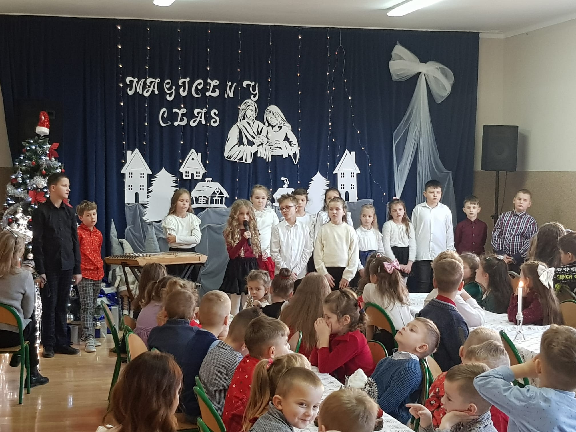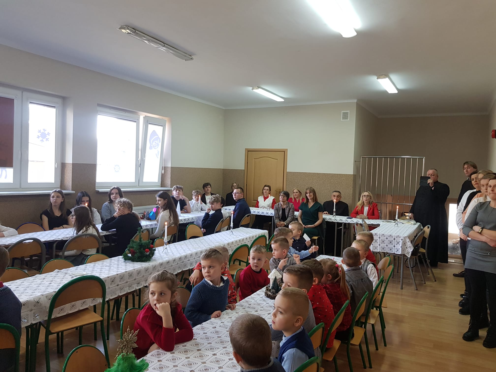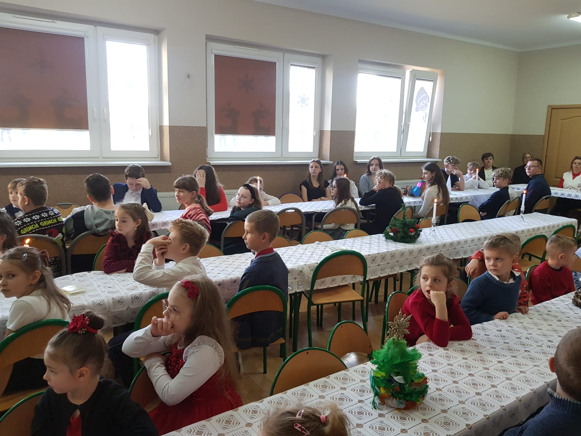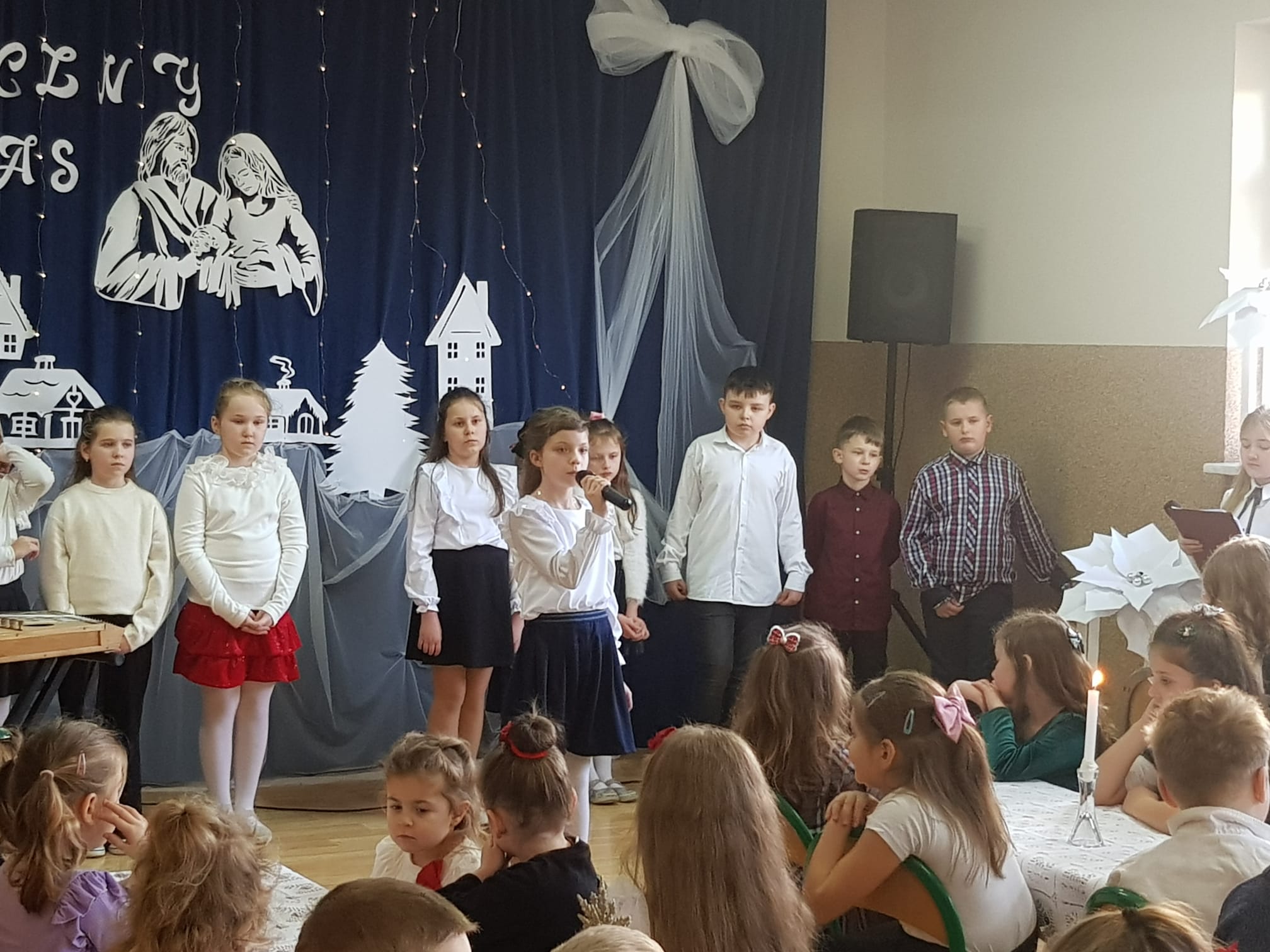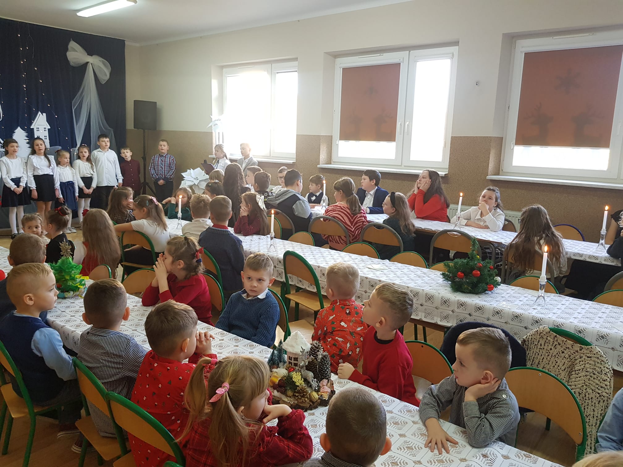 Uroczystość rozpoczęła się występem artystycznym. Uczniowie prezentowali montaż słowno - muzyczny wprowadzając wszystkich w świąteczny nastrój. Po części artystycznej przychodzi czas na wspólne dzielenie się opłatkiem, składanie życzeń i rozmowy, na które w codziennym zabieganiu często brakuje chwil. Stoły nakryte białymi obrusami, a na nich tradycyjne potrawy. To właśnie wtedy najmocniej czuć, że szkoła to nie tylko miejsce nauki, ale także wspólnota.