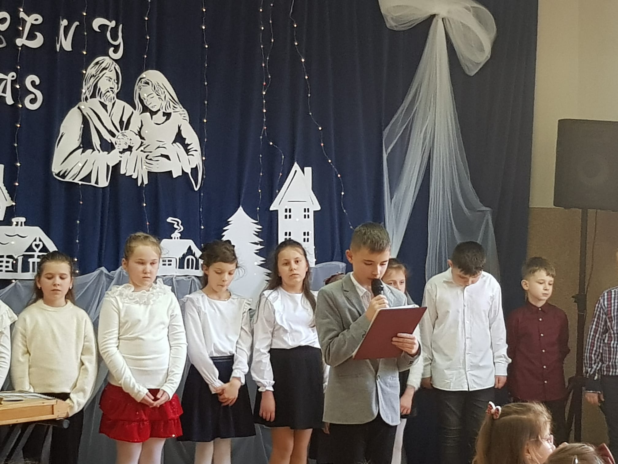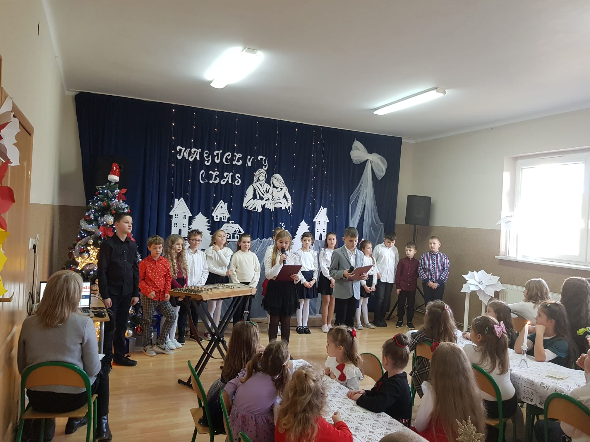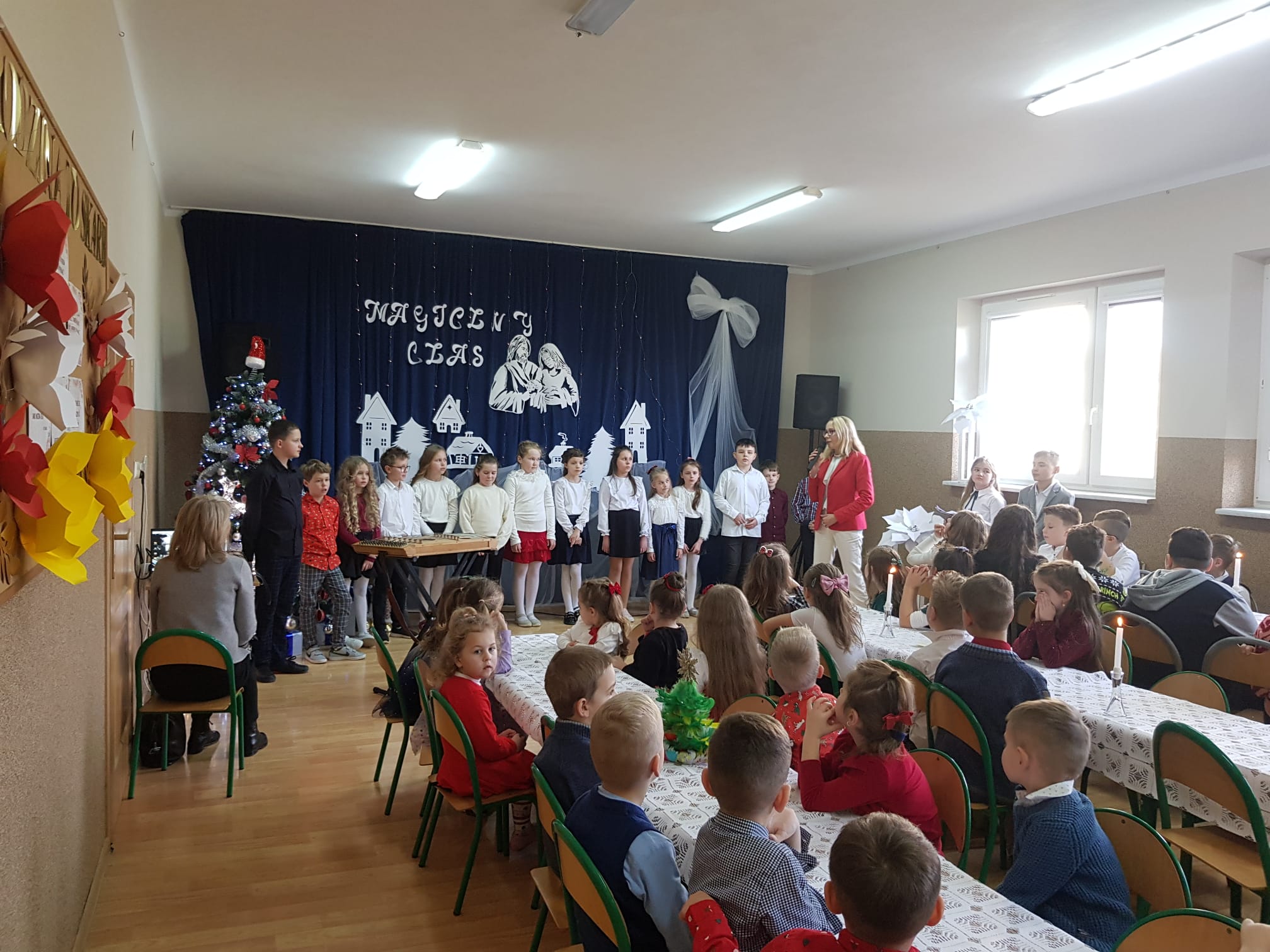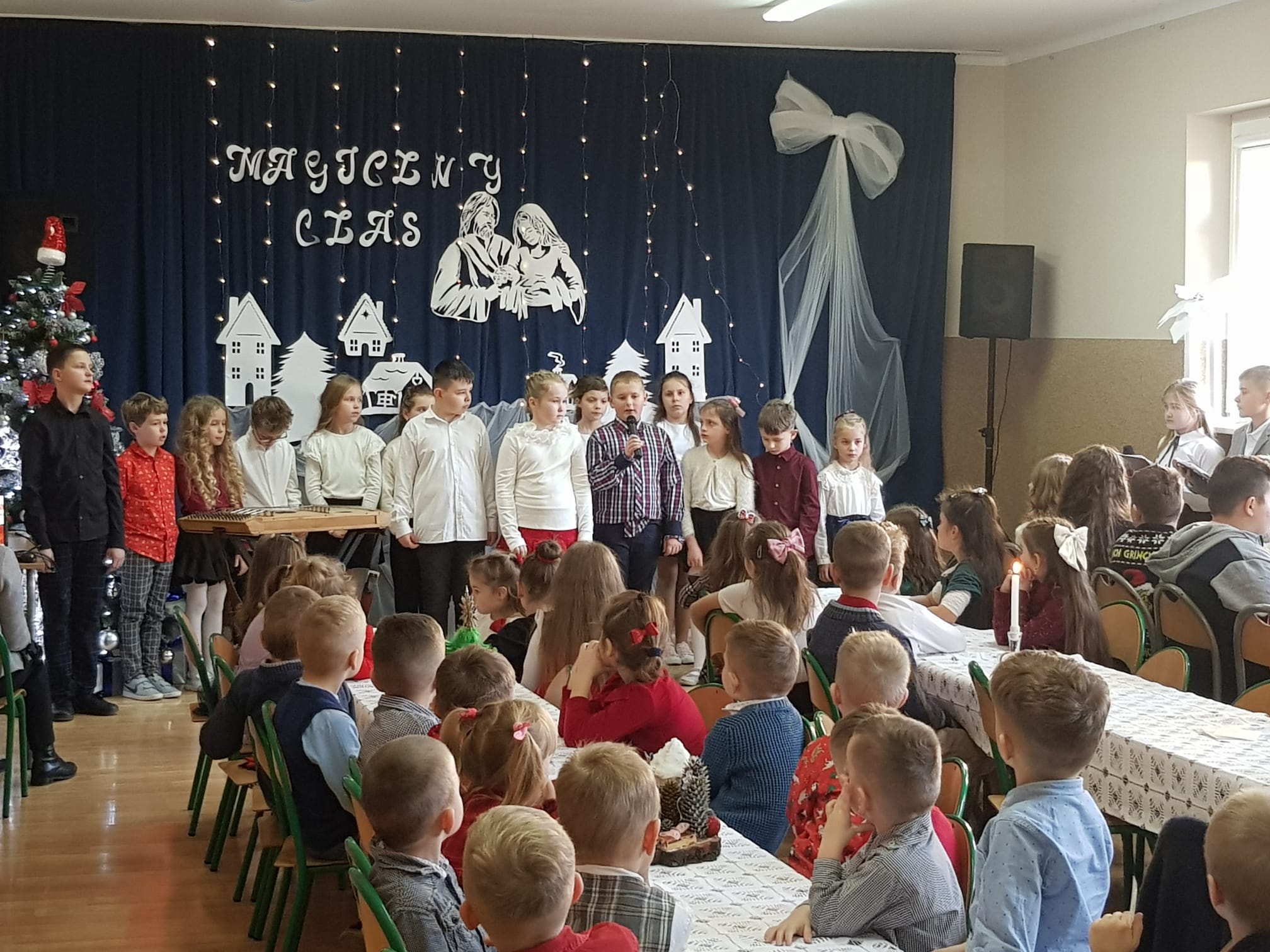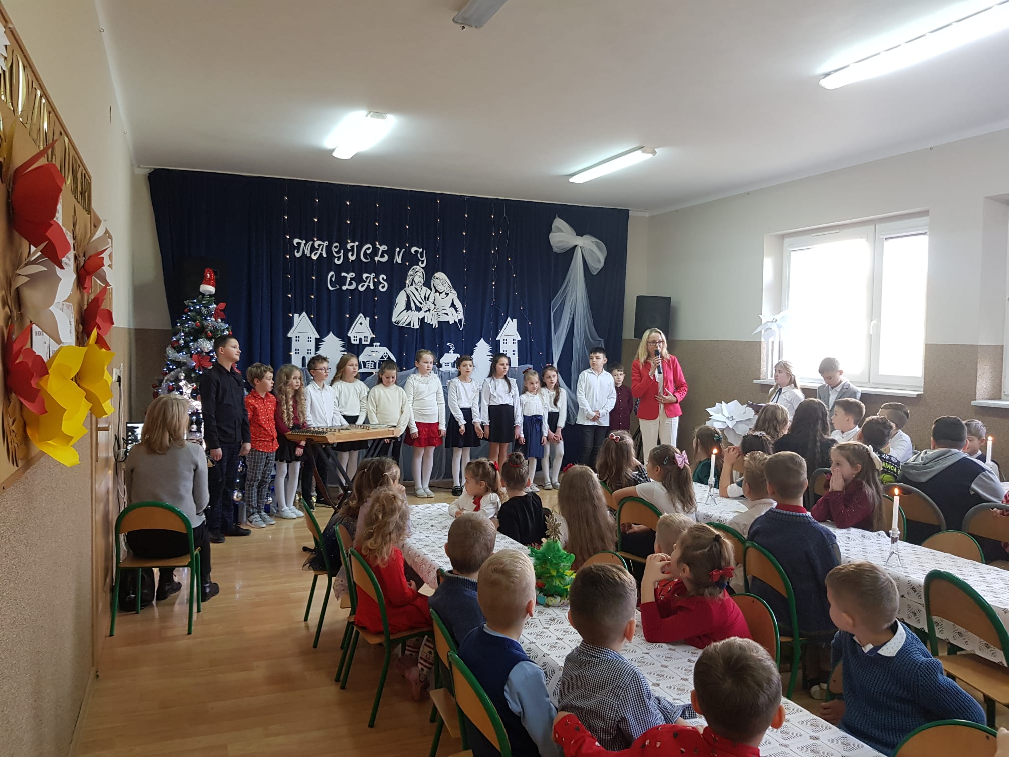 Uroczystość rozpoczęła się występem artystycznym. Uczniowie prezentowali montaż słowno - muzyczny wprowadzając wszystkich w świąteczny nastrój. Po części artystycznej przychodzi czas na wspólne dzielenie się opłatkiem, składanie życzeń i rozmowy, na które w codziennym zabieganiu często brakuje chwil. Stoły nakryte białymi obrusami, a na nich tradycyjne potrawy. To właśnie wtedy najmocniej czuć, że szkoła to nie tylko miejsce nauki, ale także wspólnota.